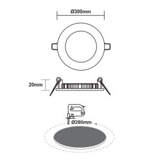 Λευκο Στρογγυλο Φ/Σ Led Με Αισθητηρα Κιν. 24W 2400Lm Cct(3000/4000/6500K) Φ280Mm 120° 230V Ip54 Ra80