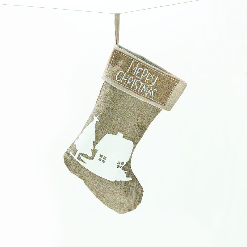 Χριστουγεννιατικη Σκουρη Μπεζ Καλτσα Διακοσμητικη (Σπιτι & Δεντρο) 26*47Cm