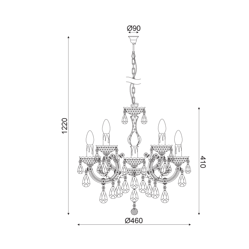 Κρεμαστο Φ/Σ 5Xe14 Πατινα - Λευκο Γυαλι Φ61Cm Perone