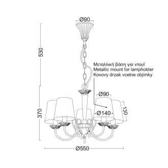 Netto Κρεμ Φ/Σ 6Χε14 Διαφανο Κρυσταλλο+Χρυσο Μεταλ Φ51Χh162Cm Gladiolo