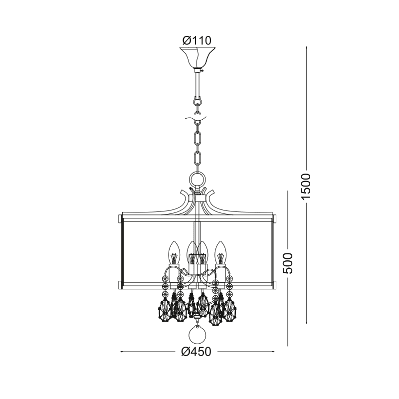Κρεμαστο 5Χε14 Μεταλ Πατινα Λευκο/Μαυρο+Αμπαζουρ Φ57Χη103Cm Karpathia